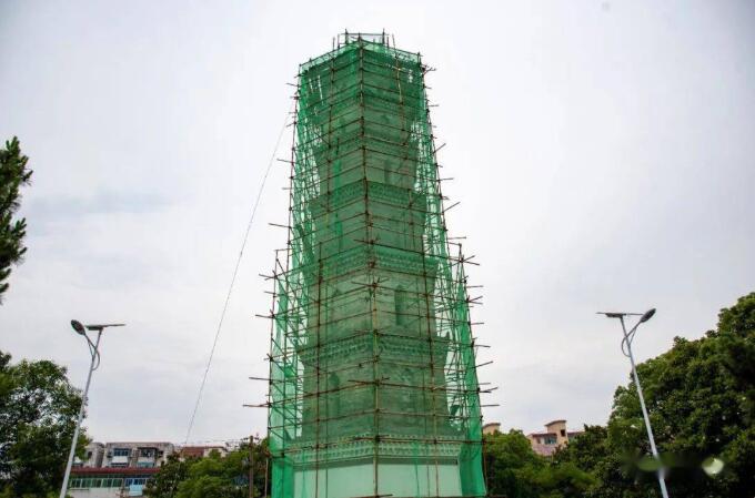 近日,記者到文峰塔下,只見塔身已包裹得嚴(yán)嚴(yán)實(shí)實(shí),腳手架又高又密。工人們?cè)谒现v話,就好像天上傳來的聲音。