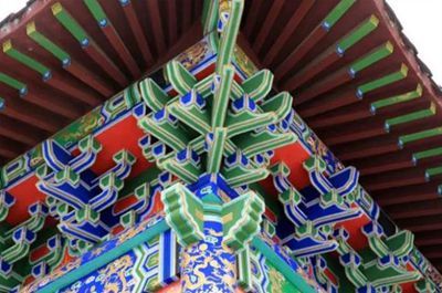 斗拱位于屋頂和立柱之間,起到將房檐的重量傳遞到立柱的作用。重要的或是紀(jì)念性的建筑,大都有斗拱存在。