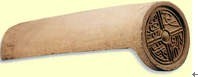此件瓦當(dāng)面上部為一馬一鹿圖案,左右并列,下部“甲天下”3字凸起,篆書體。“甲”作序數(shù)時(shí)為第一的代稱,《文選·張衡〈西京賦〉》:“北闕甲第,當(dāng)?shù)乐眴?/span>”,李善注引薛綜曰“甲,言第一也”。