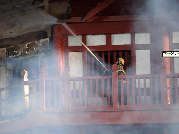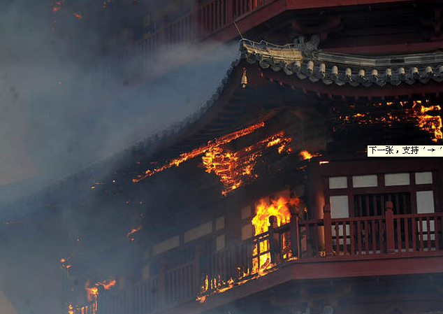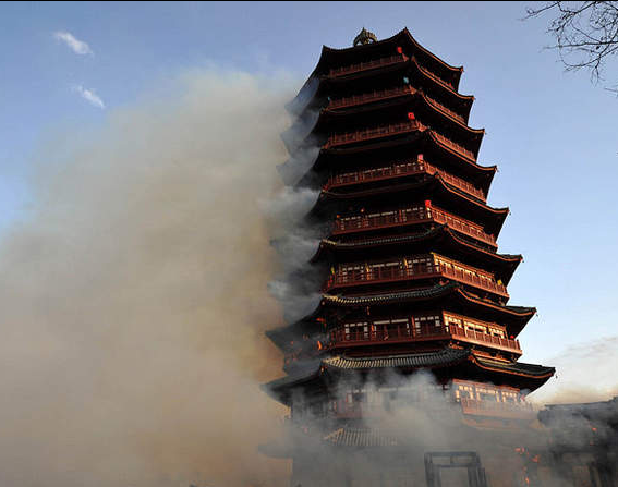 永定塔建設(shè)在園博園內(nèi)的鷹山之上,是遼代風(fēng)格、八角九層的仿古木塔,塔身雖然只有69米高,但由于建在山上,故可遙望北京城。火災(zāi)現(xiàn)場(chǎng)。